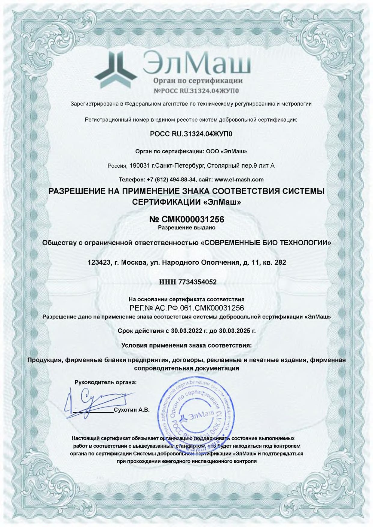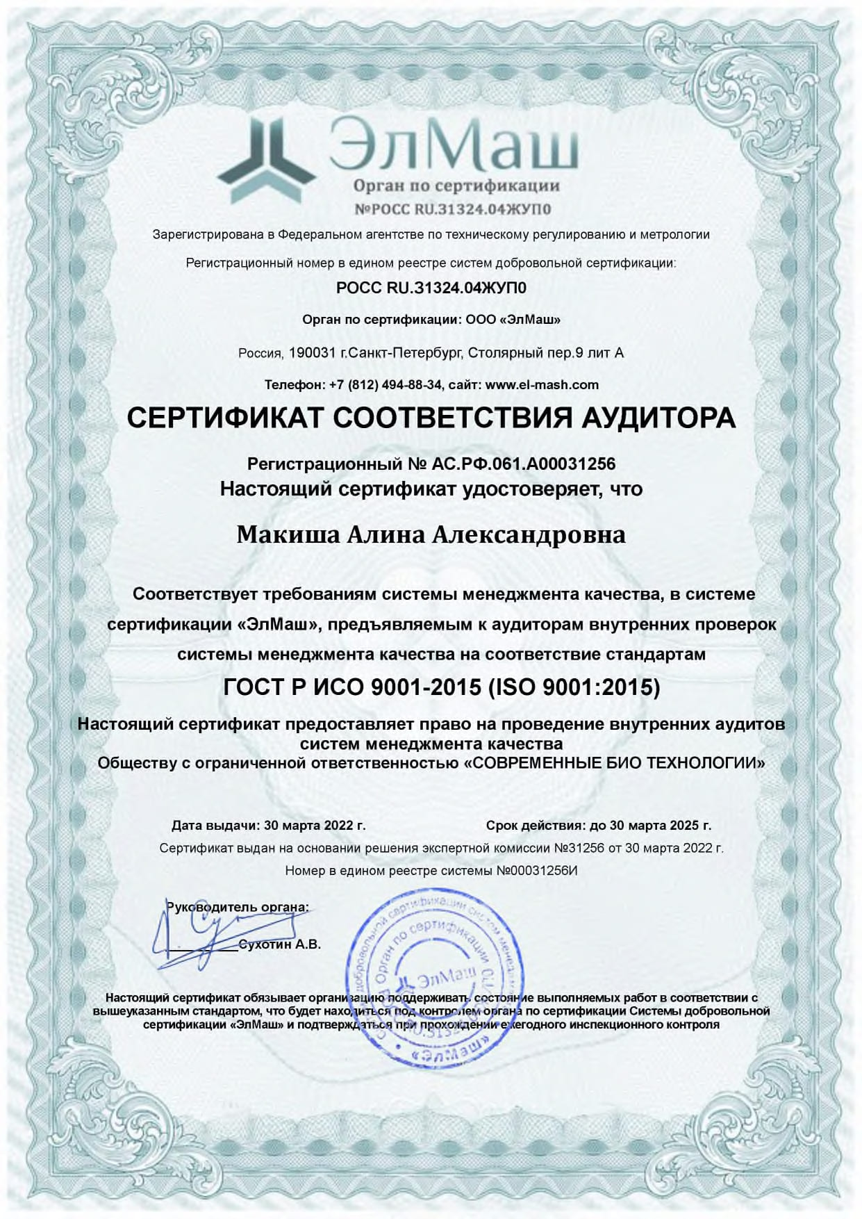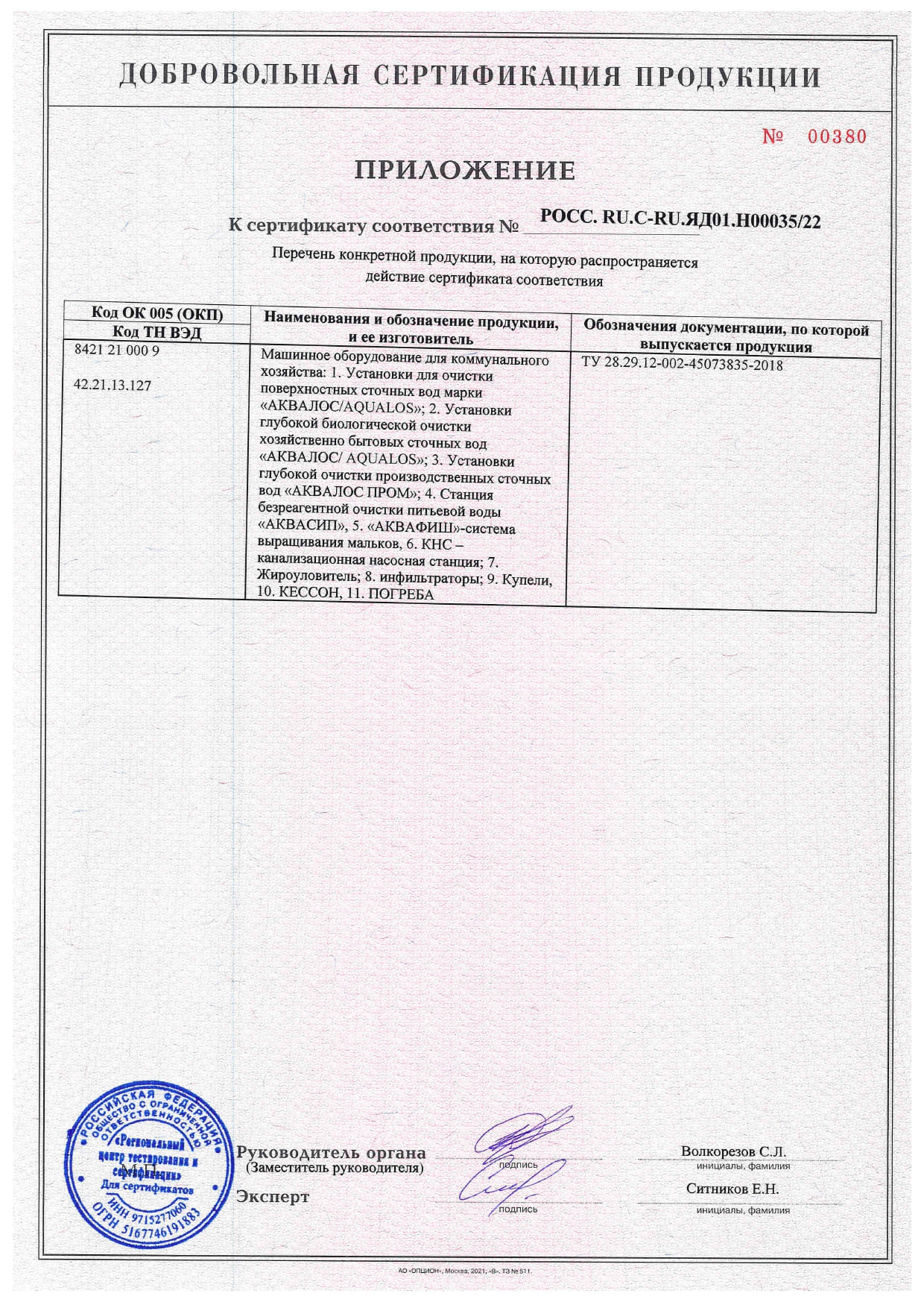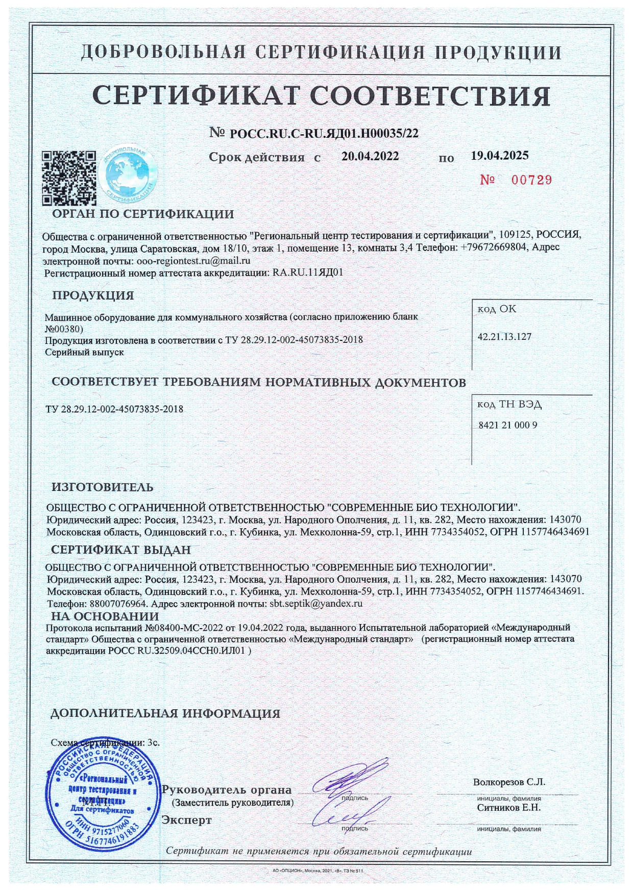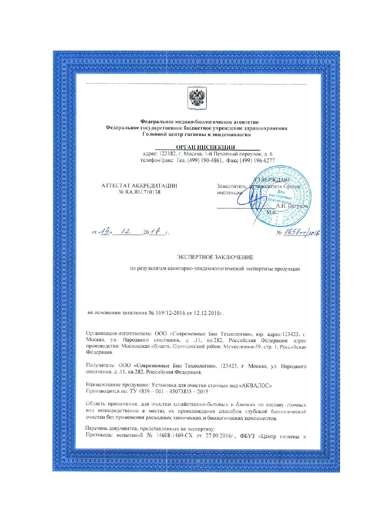 Сертификаты и экспертные заключения