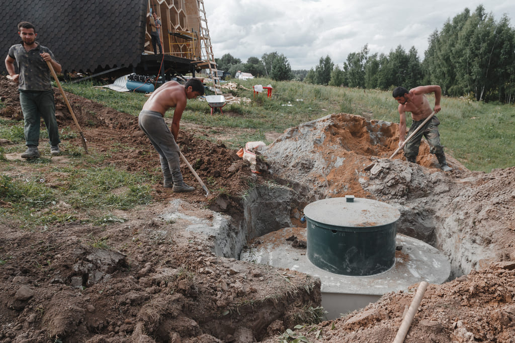 Поверх корпуса оборудования выполняется песчаная обсыпка на высоту 150-300 мм. Для подсоединения оборудования к внутренней канализационной магистрали применяют канализационные трубы, предназначенные для эксплуатации в наружной канализационной системе, обладающие диаметром 110мм.