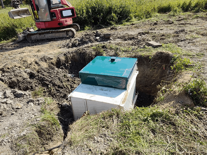 - Выберите место для установки септика Итал Био 5, учитывая требования к удалённости от жилых помещений, грунтовым водам и т. д.