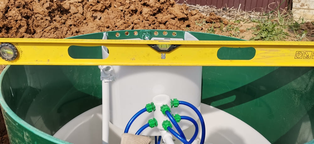 Отфильтрованная жидкость после биообработки поднимается до уровня фильтров и просачивается через них, достигая полной чистоты. После прохождения через фильтры вода может быть сброшена в ландшафт или использована в дальнейшем в технических целях.